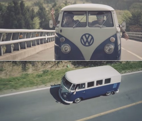 이제 뮤비를 소개할 차례입니다. 저와 빅브라더가 미니버스를 타고 도로를 질주하는 장면입니다. 신나게 달리다 낯선 곳에 도착하죠. 마치 '센과 치히로의 행방불명'처럼 무언가에 이끌려 숲 속으로 들어갑니다.
