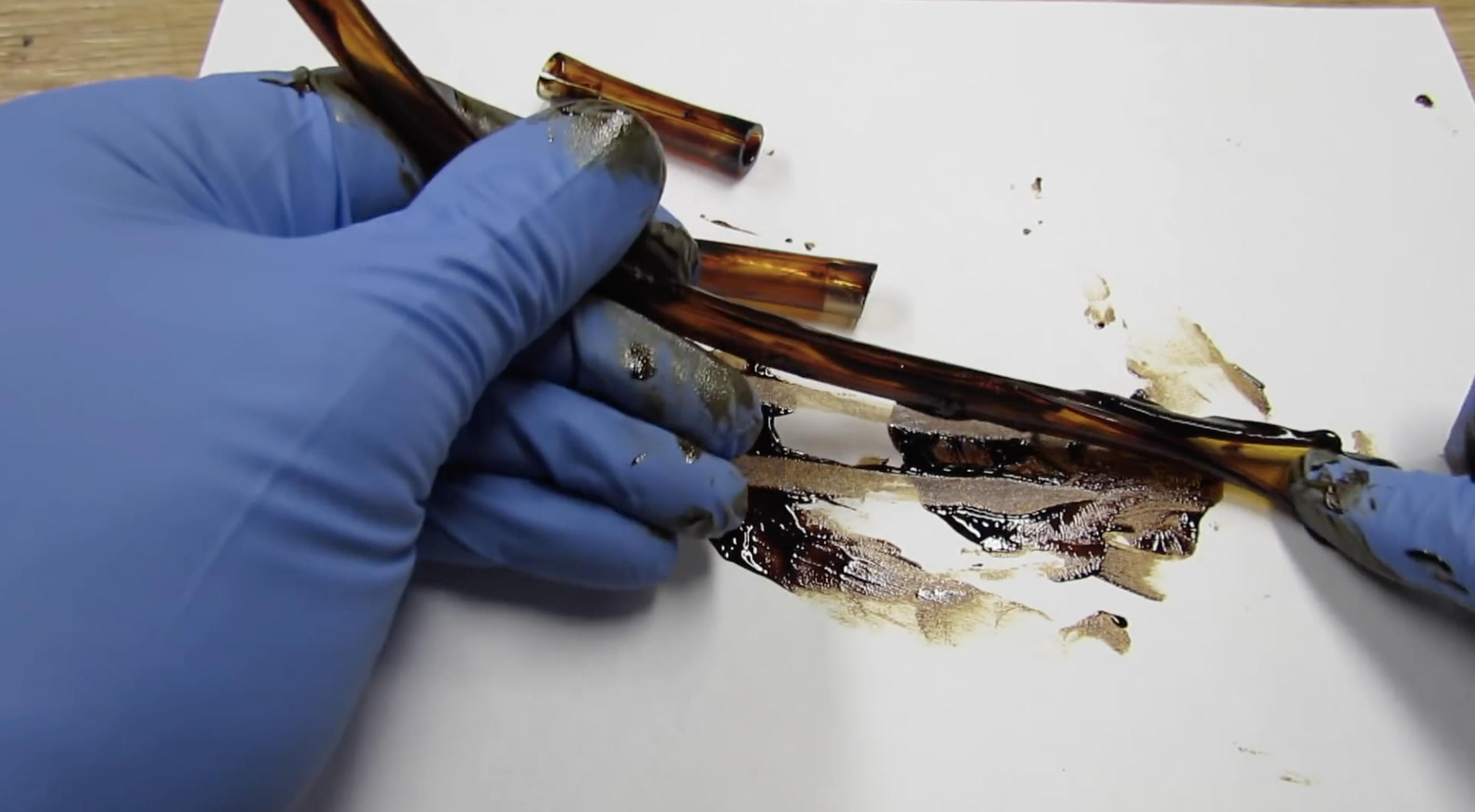 결과는 어땠을까요? 우리 몸의 입, 목, 폐라고 할 수 있는 호스와 기계 곳곳은 검은 액체로 가득했습니다.