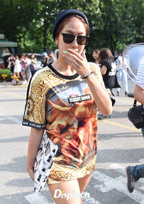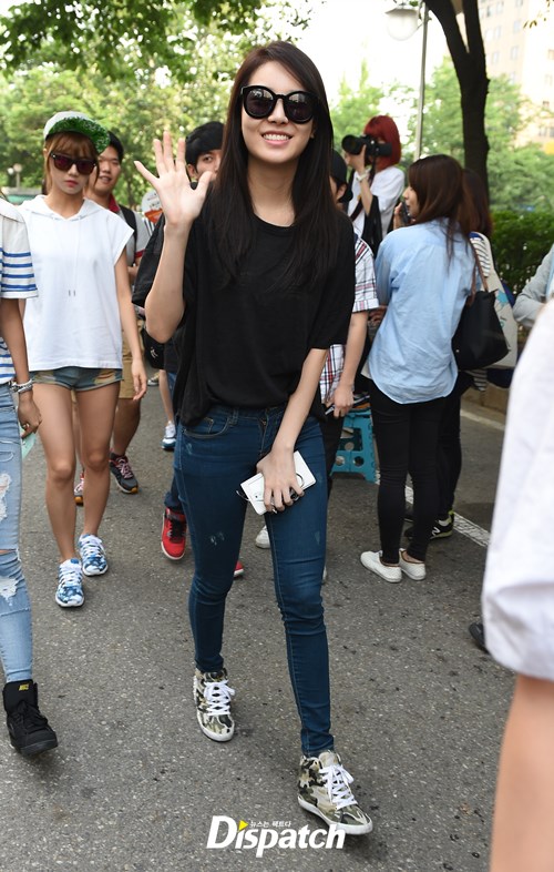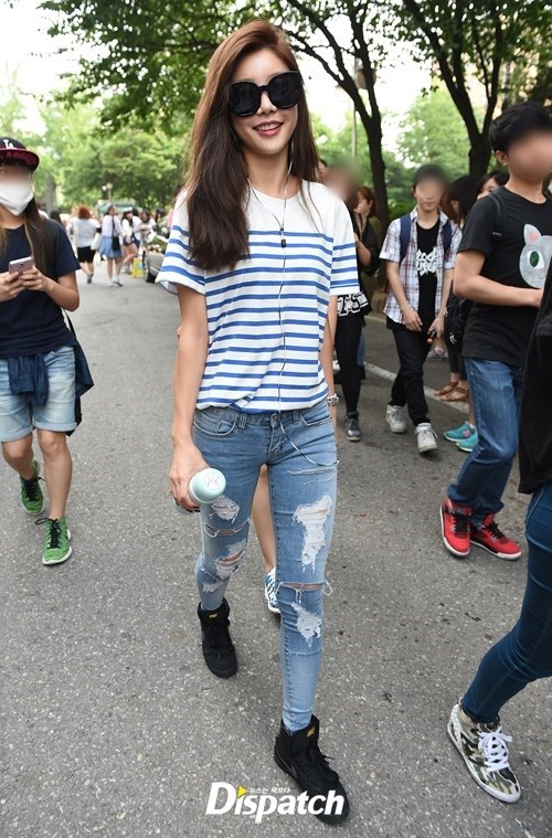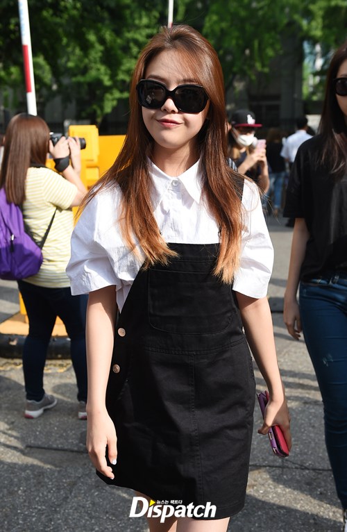 '썸씽' 활동 종료 후 약 2달만입니다. 무대 위의 아찔 유라는 없네요. 청순한 스타일이 눈길을 끕니다. 유라는 루즈핏 블랙 티셔츠, 혜리는 후드티로 심플룩을 완성했습니다. 소진은 스트라이프 티셔츠와 데미지 진을 매치. 민아는 블랙 오버롤 원피스를 입었습니다.