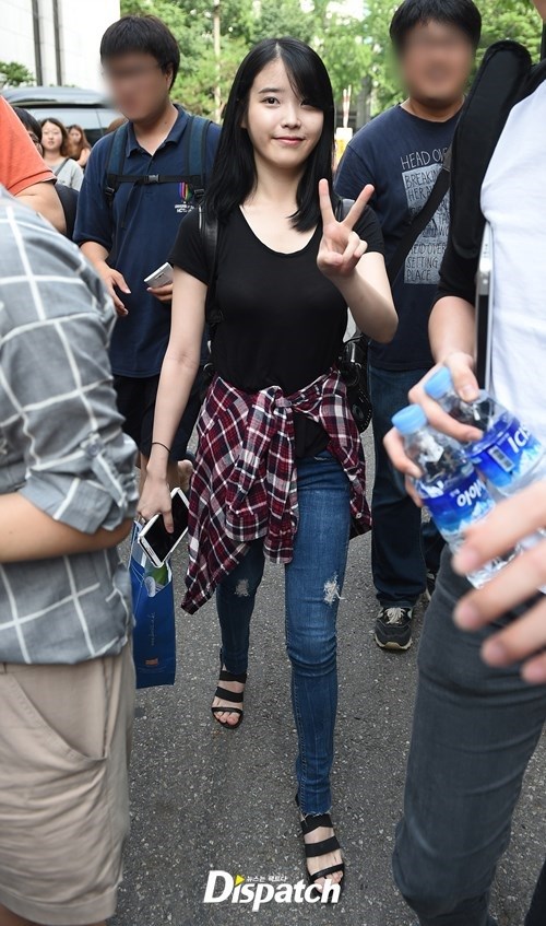 '금요일에 만나자'고 거듭 강조했던 아이유. 드디어 만났습니다. 6개월 만에 '뮤뱅' 출근길에 모습을 드러냈네요. 국민 여동생 타이틀에 걸맞게 팬서비스도 수준급. 쉴 새 없이 손을 흔듭니다. 의외의 볼륨감에도 깜짝. 타이트한 검은 티셔츠로 몸매를 뽐냈습니다.