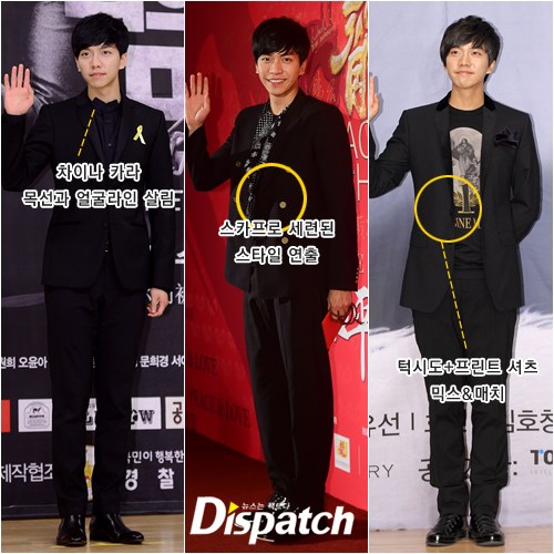 블랙룩, 가장 무난한 패션이다. 자리를 불문, 깔끔하게 잘 어울린다. 단, 수트와 이너웨어에 따라 느낌은 미묘하게 달라진다. 이승기 역시 블랙룩에서 이를 십분 활용했다.