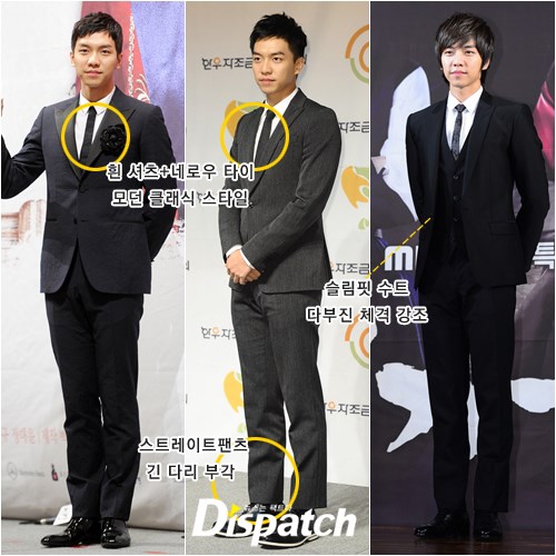 선택과 집중의 멋도 알았다. 리얼웨이에서는 배기 팬츠를 선호했다. 하지만 수트룩에 있어서는 스트레이트 바지를 고집했다. 엄친아에게 유행보다 중요한 건, 때와 장소…. 즉, TPO였다.