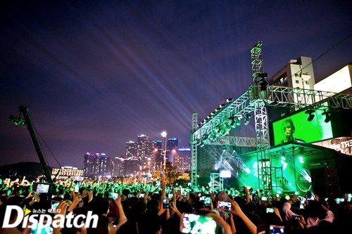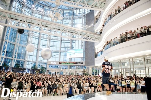 먼저 지난 28일입니다. 여기는 부산 '센트럴스퀘어'입니다. 블링블링한 힙합룩을 입고 무대에 오른 태양, 스웨그가 넘칩니다. 그의 등장에 부산이 들썩. 갈매기까지 난리였다는 '오버'가~.