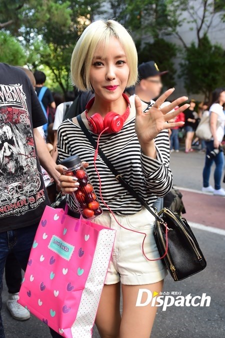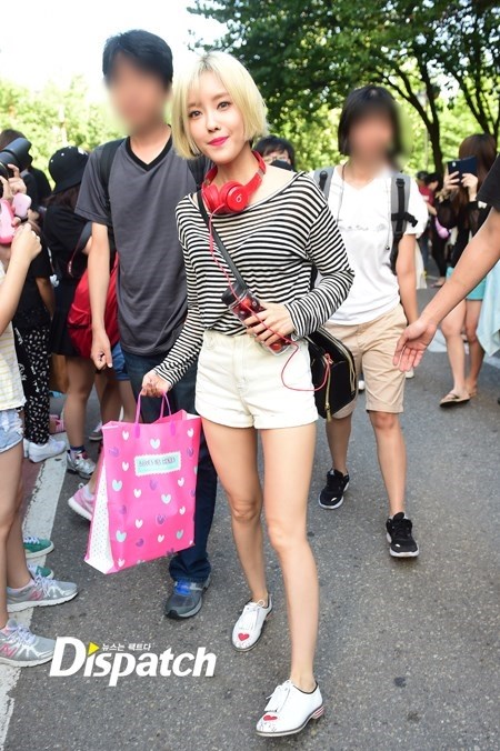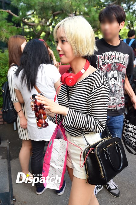 패션 감각도 나이스였습니다. 스트라이프 티셔츠와 흰색 핫팬츠로 시원한 마린룩을 완성했습니다. 티셔츠와 가방, 헤드셋과 신발의 포인트 컬러까지 맞추는 센스까지~