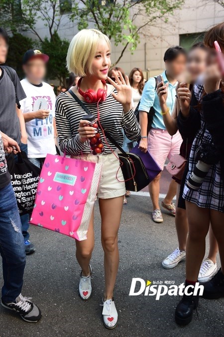 패션도 '핫'했습니다. 크리스탈은 과감한 핫팬츠 룩으로 시선집중. 하이웨스트 팬츠 덕분에 다리가 더욱 길어 보였습니다. 단화를 신어도 굴욕없는 각선미.