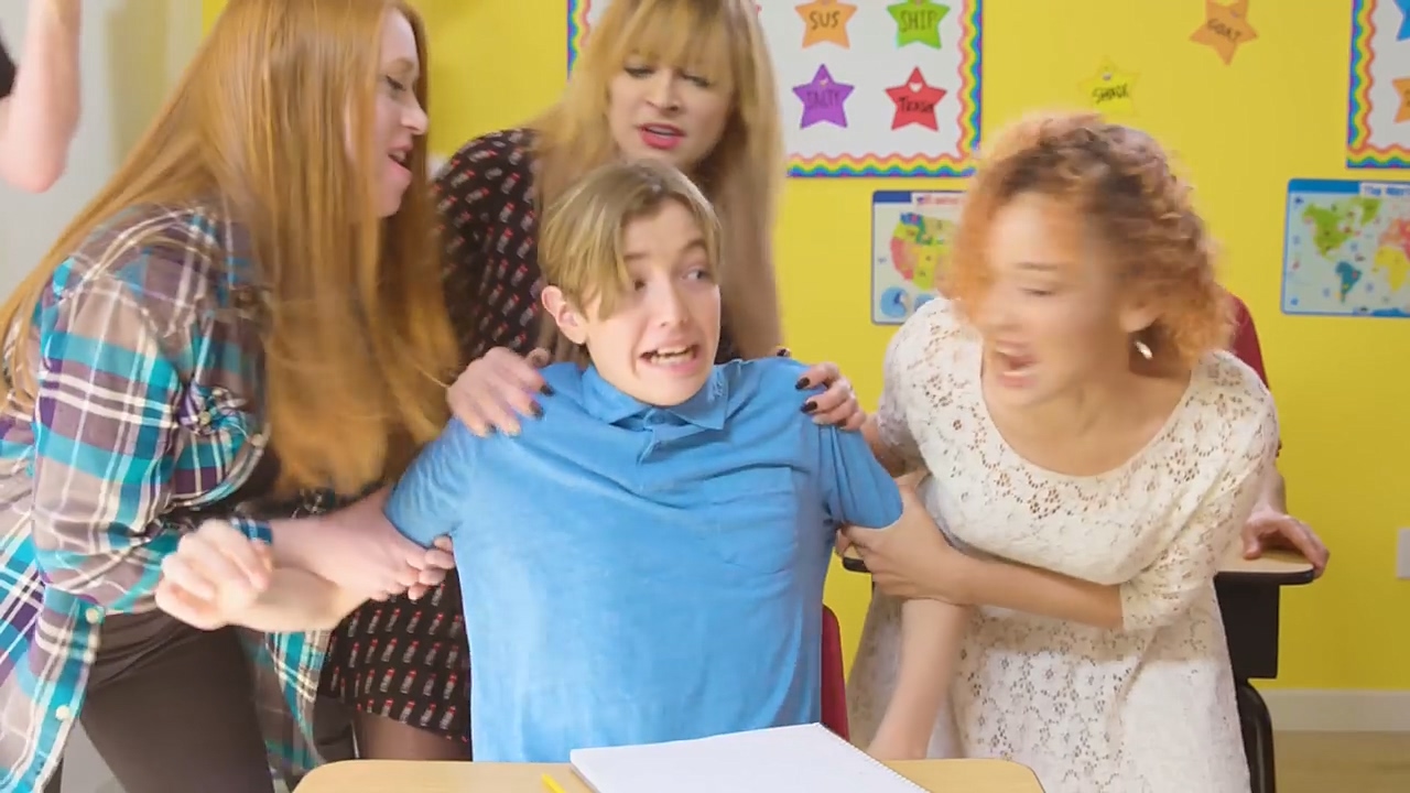 그리고 영상 중간에 교실에 앉아있던 10대 소년이 "BTS는 짜증난다"고 이야기했는데요. 그 순간 10대 소녀 3명이 등장해 그를 순식간에 끌고 나갑니다.