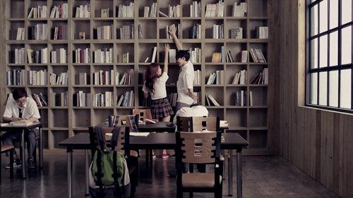 소유와 민우가 서로를 제대로 마주하는 장면입니다. 책에 손이 닿지 않는 저를 돕기 위해 민우가 나섰죠. 하지만 결과는?