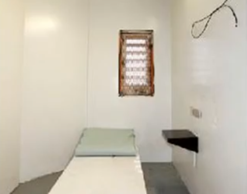 교도소 내부는 탈출이나 자살, 사고 등을 방지하기 위해 엄격된 물품들로만 채워져 있다. 벽은 콘크리트로 제작되었다.