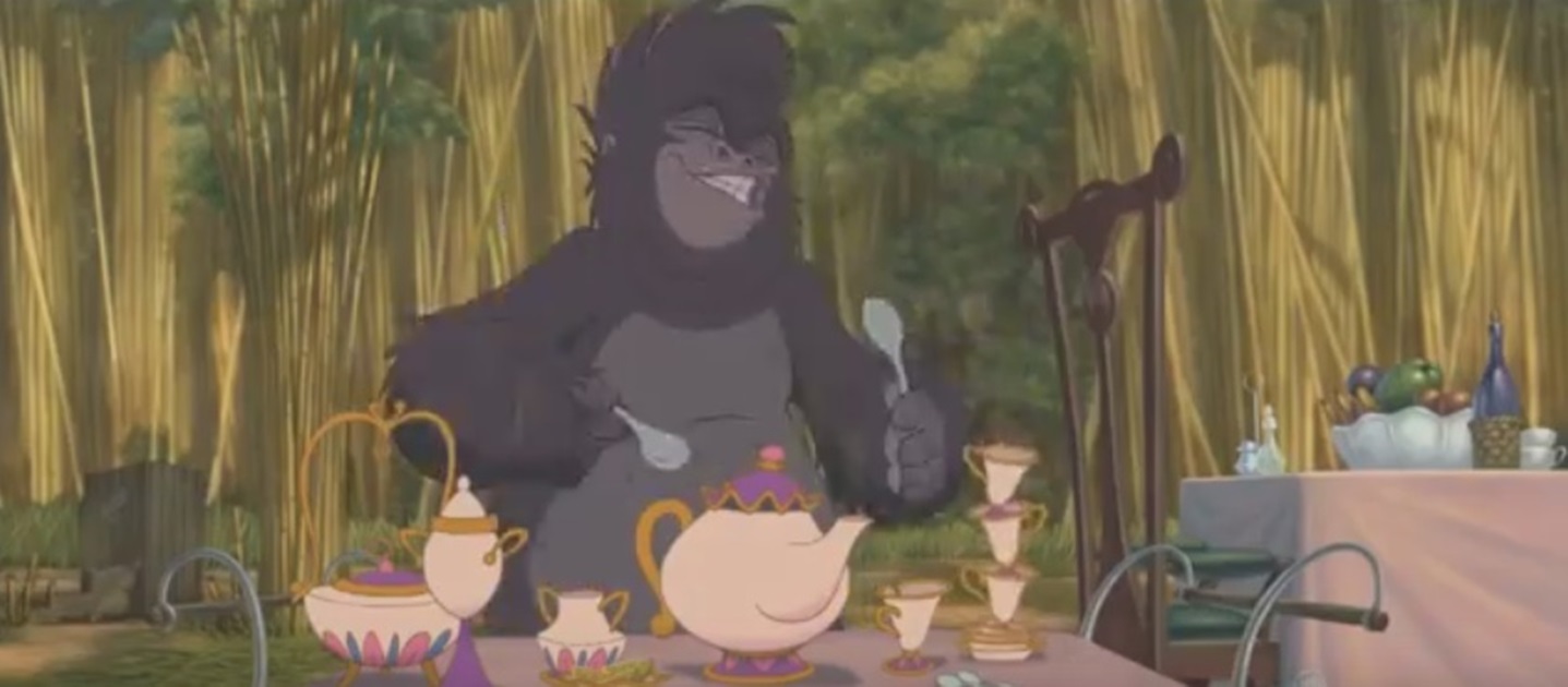 고릴라 무리들이 제인의 캠프를 어지럽힐 때 미녀와 야수에서 나왔던 식기구와 컵들을 볼 수 있습니다.