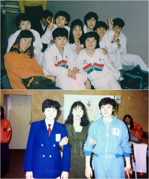 팀원들의 다정한 포즈도 눈길을 끌었다. 현정화와 리분희는 팀원들 속에 나란히 밀착해 앉았다. 다른 팀원들은 밝은 미소를 지으며 손으로 브이자를 하기도 했다.