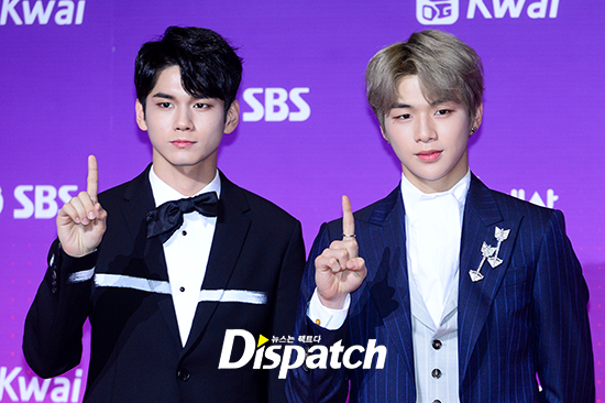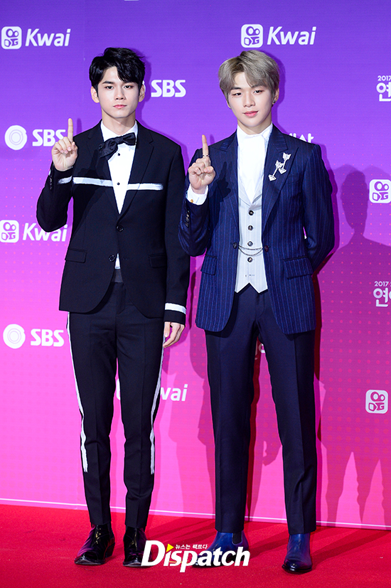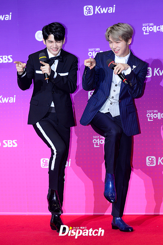 '워너원' 옹성우와 강다니엘은 '나야 나' 포즈를 취하며 귀여운 매력을 뽐냈다.