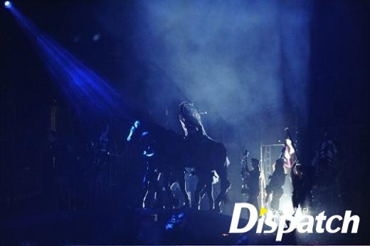 태극기 퍼포먼스도 등장했다. 가가는 '헤비메탈러버'를 태극기가 달린 바이크 위에서 열창했다. 노래 중간 '코리아'를 언급하며 한국 사랑을 드러냈다. 기관총 퍼포먼스도 나왔다. 가가는 불꽃이 터져나오는 총을 하늘 위로 쏘며 여전사 이미지를 연출했다. 과격한 분위기였다.