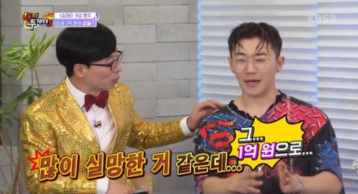 실수령액을 궁금해하는 다른 이들에게 행주는 조심스럽게 손가락으로 2, 3을 표현했다. 이에 유재석은 “말로 하지, 손으로 하냐”며 크게 웃었고, 행주는 “2~3천 정도 받은 것 같다”고 고백했다.