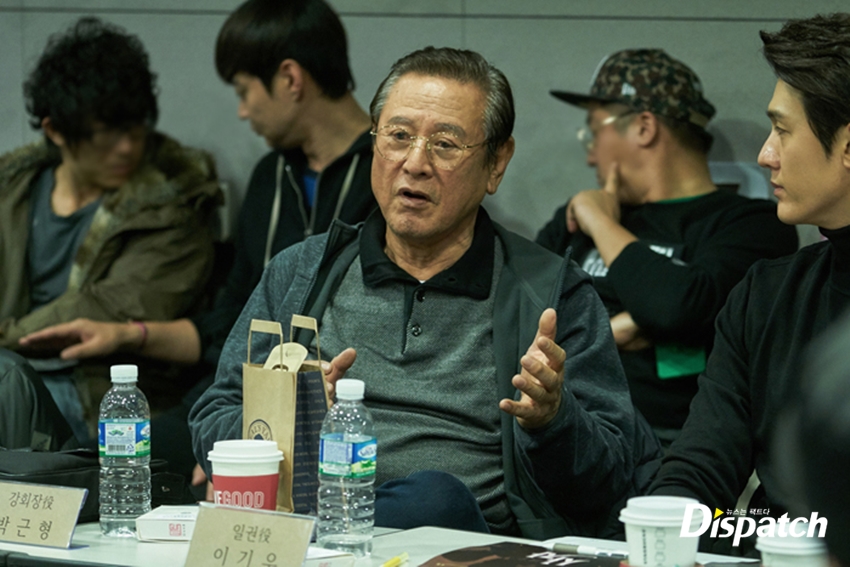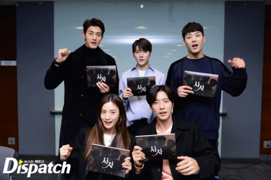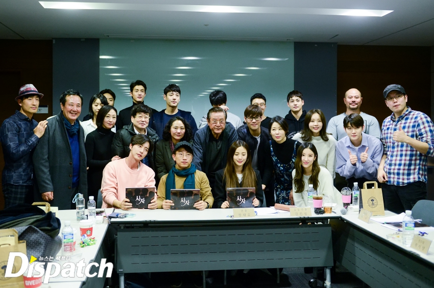 이곳은, 드라마 '사자' 대본 리딩현장입니다. 장태유 PD를 비롯해 박해진, 나나, 이기우, 곽시양, 박근형, 김창완, 최민기 등이 참석했습니다.