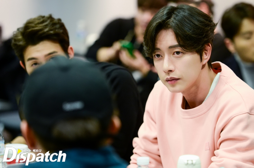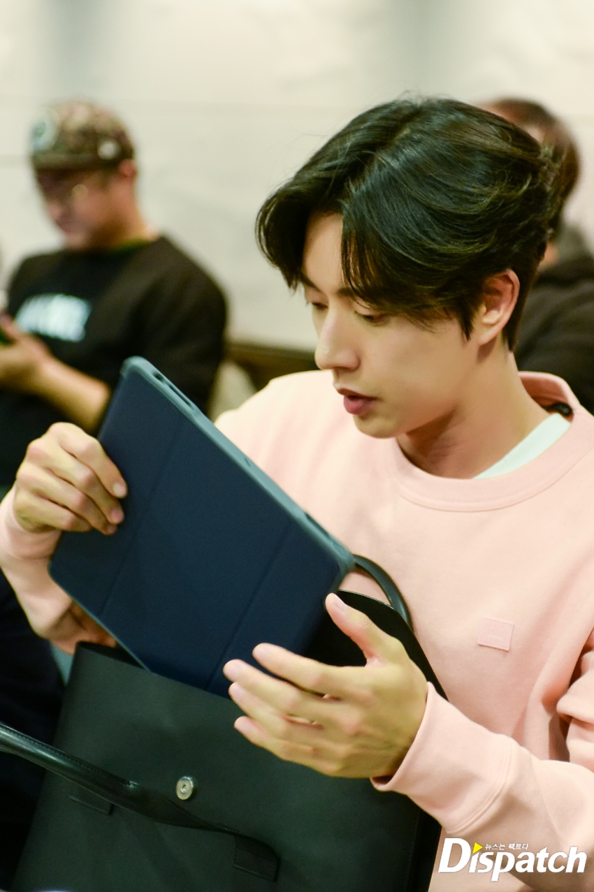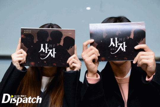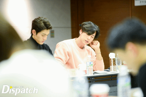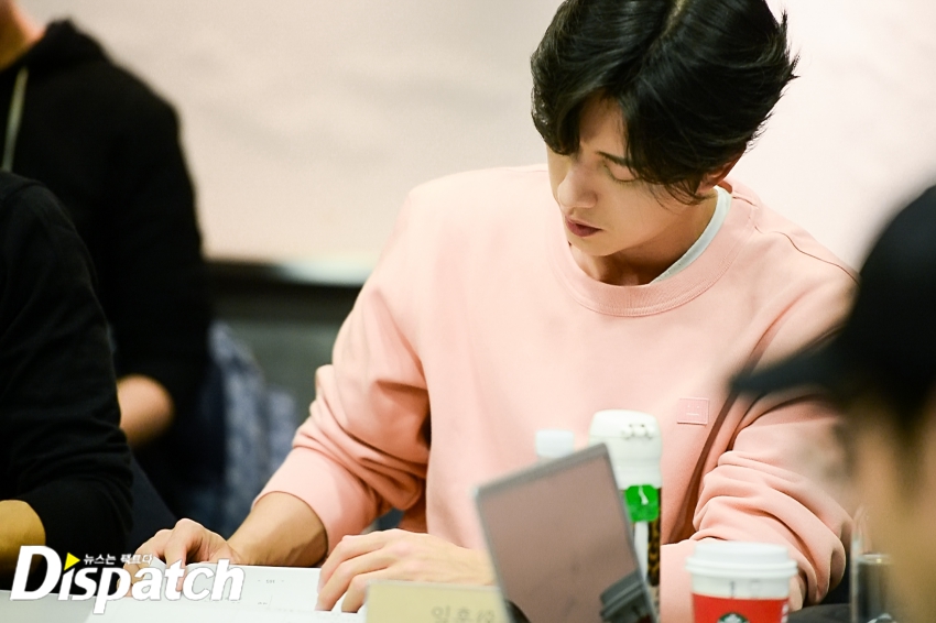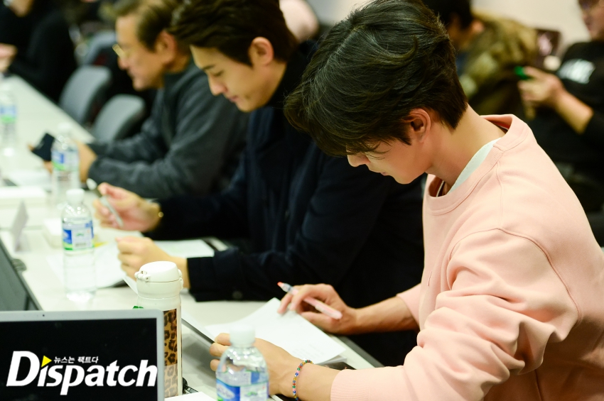 '사자'팀은 이날 3시간 동안 대본 리딩을 이어갔습니다. 박해진은 밖을 나와서도 대본을 손에서 놓지 않았는데요. 그때 누군가 다가왔습니다.