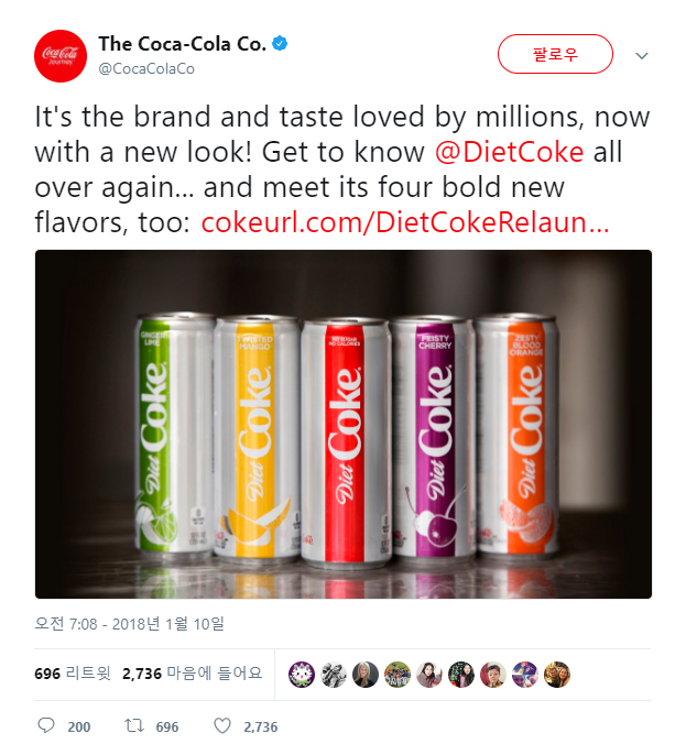 코카콜라는 10일(현지시간) 다이어트 코크 신제품 4종 출시를 알렸는데요. 2월부터 북미 지역에서 판매된다고 합니다.