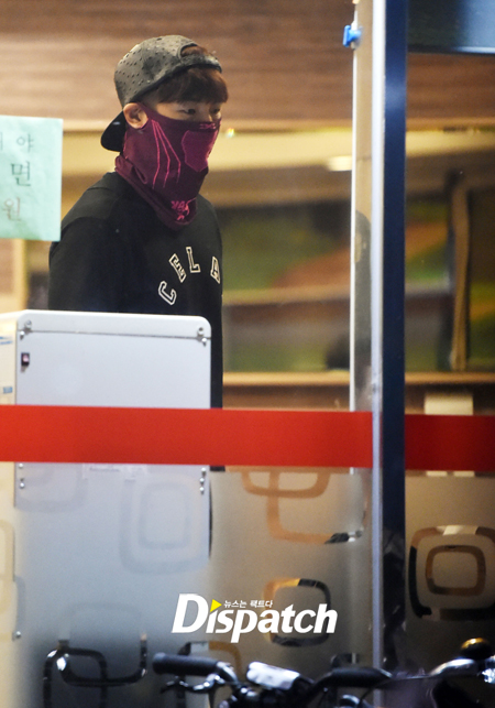 아무래도 손호영은 주변의 시선을 신경쓰는 모습이었습니다. 보라색 마스크로 입과 코를 가렸습니다. 하지만 그 눈빛은 멀리서 봐도 손호영이었습니다.