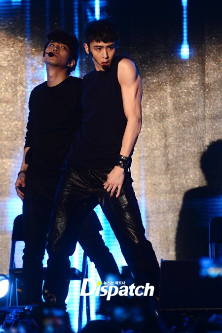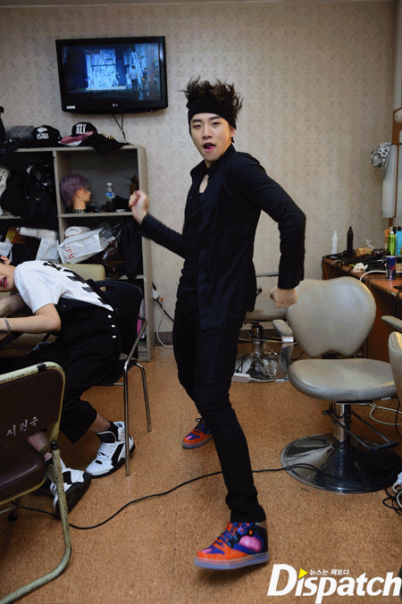 저 화려한 스텝의 주인공! 바로 옥택연입니다. 삼디다스 슬리퍼를 신고 현란한 발동작을 선보였는데요. 역시 머리부터 발끝까지 '스웩'이 넘쳐납니다.