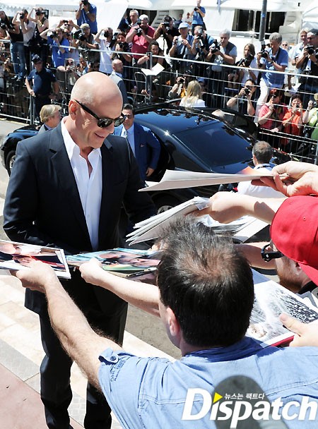 [Dispatch| 칸(프랑스)=특별취재팀] 브루스 윌리스(57)가 팬서비스의 진수를 보였다. 그는 팬들에게 먼저 다가가고 인사를 건네며 폭풍 팬서비스를 자랑했다.