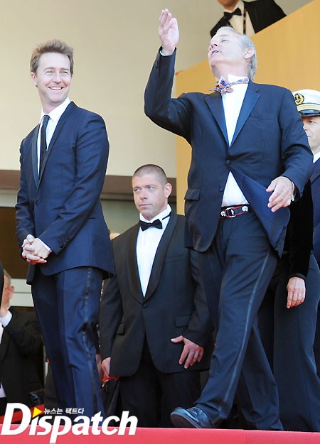 '문라이즈 킹덤' 남자 배우들은 단체로 손키스 포즈를 취했다. 레드카펫 계단 위에서 만난 그들은 나란히 선 상태에서 손키스를 했다. 브루스 윌리스는 진지하게, 애드워드 노튼은 유쾌하게, 빌 머레이는 박력있게, 각각 개성에 맞는 손키스였다.