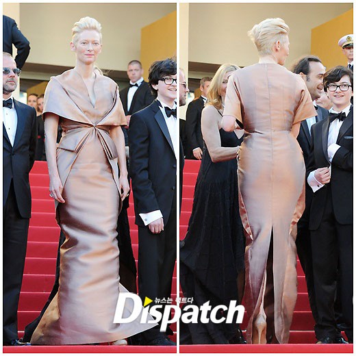 스윈튼의 드레스는 올드, 그 자체했다. 그는 실크 롱 드레스를 입고 레드카펫에 등장했다. 좁은 V라인의 네크라인을 비롯해 숄 형식의 드레스 라인이 칙칙해보였다. 점점 좁아지는 스커트 역시 답답해 보였다. 특유의 고혹적인 매력은 어디서도 찾아볼 수 없었다.
