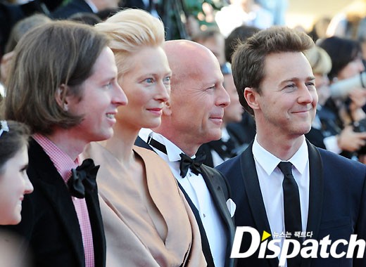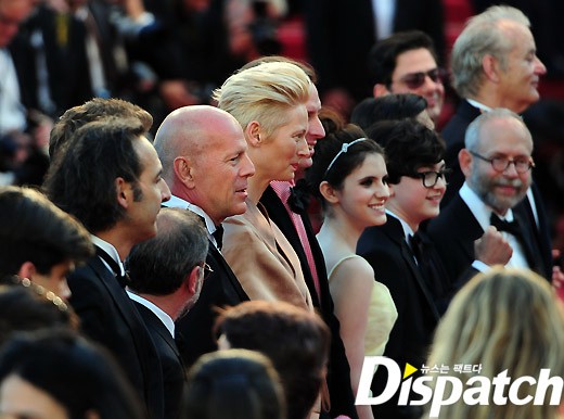 칸영화제 레드카펫 공식, 주인공은 언제나 마지막에 나타난다. 이날의 주인은 개막작으로 선정된 영화 '문라이즈 킹덤'의 출연배우들. 레드카펫이 열리고 90여분이 지나자, 브루스 윌리스, 애드워드 노튼, 빌 머레이, 틸다 스윈튼 등이 마침내 모습을 드러냈다.