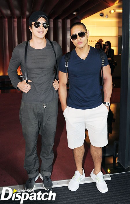 두 사람은 76년생 절친. 공항에서도 남다른 사이임을 엿볼 수 있었다. 나란히 취재진 앞에서 포즈를 취한 것은 물론 어깨동무를 하며 친분을 자랑했다. 중간 중간에 격없이 대화를 하는 모습도 볼 수 있었다.