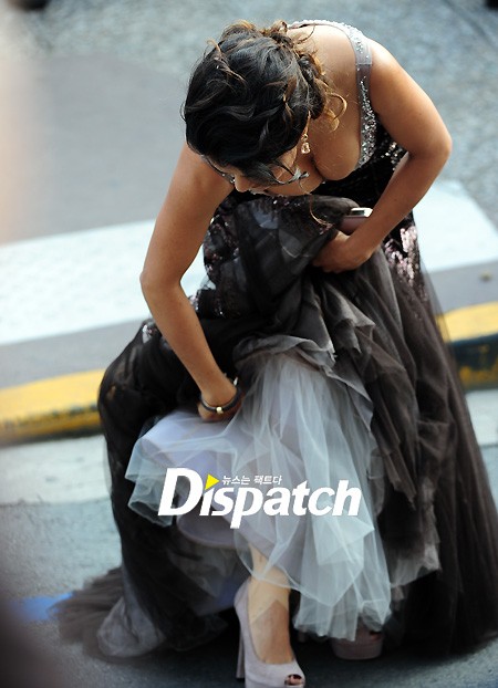 헤이액은 우아하게 등장했다. 하지만 차에서 내리던 중 문제가 발생했다. 유난히 긴 드레스가 하이힐에 걸려 움직이지 못하는 상황이 연출된 것. 헤이액은 재빨리 고개를 숙여 드레스 자락을 매만졌다. 이 때 풍만한 가슴라인이 부각되면서 아찔한 장면이 연출됐다.