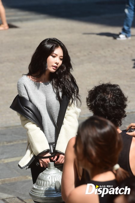 현아는 뉴욕 스케줄은 빡빡했습니다. 패션위크 참석 후에는, 화보 촬영도 진행했는데요. 이날의 한낮 기온은 30도를 웃돌았습니다. 가만히 있어도 땀이 줄줄 흐르는 날씨였죠.