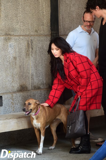 동물을 좋아하는 현아를 위해 특별한 컷도 연출했습니다. 포토그래퍼가 즉석에서 대형견을 섭외했는데요. 사납게 생긴 대형견을 쓰다듬으며 두 번째 화보 촬영에 나섰습니다.