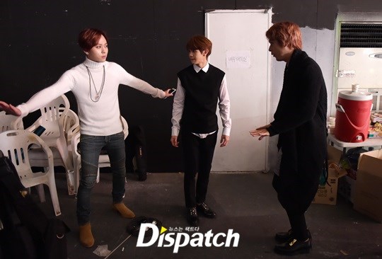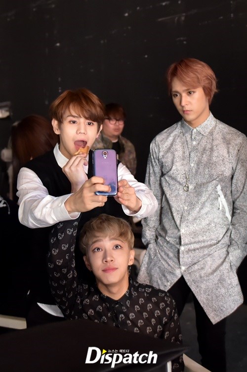 이날 비스트는 전담 포토그래퍼가 있었는데요. 바로 두준과 요섭이었습니다 손에서 휴대폰을 놓지 않더군요. 셀카는 물론, 멤버들 사진까지 꼼꼼히 촬영합니다.