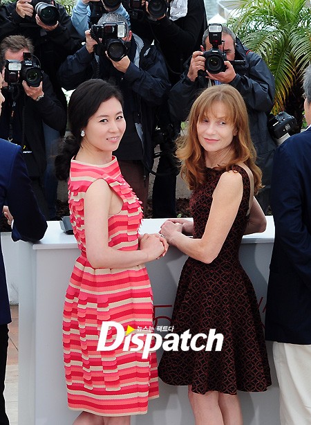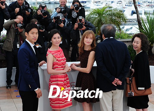 이날 포토콜에는 홍상수 감독을 비롯 유준상과 문소리, 윤여정 그리고 프랑스 국민여우 이자벨 위페르 등 총 5명이 함께 등장해 포즈를 취했다. 홍상수 감독과 유준상은 수트를, 위페르와 문소리, 윤여정은 원피스를 입고 카메라 앞에 섰다.