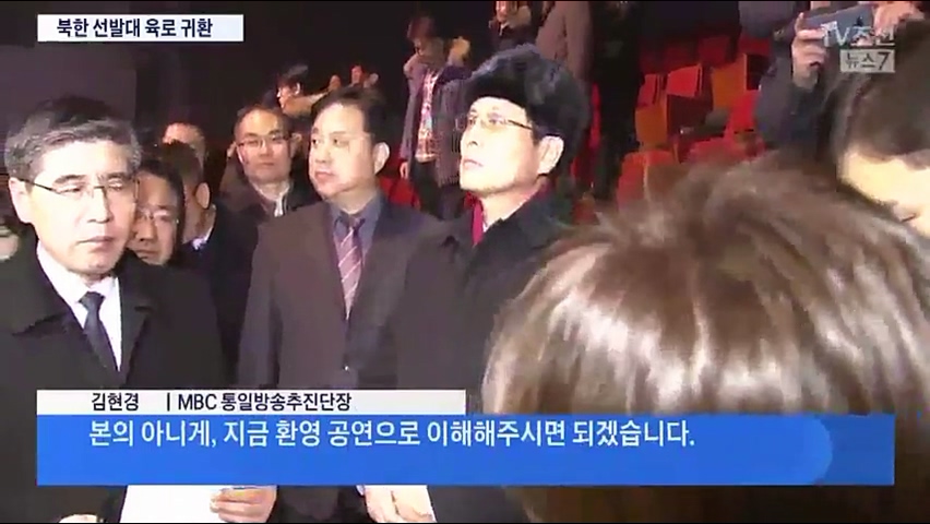 당시 함께 하던 MBC 직원도 당황스럽기는 마찬가지였습니다. 북측 선발대들에게 "본의 아니게 환영 공연으로 이해해달라"고 말해 어색한 분위기를 수습했습니다.