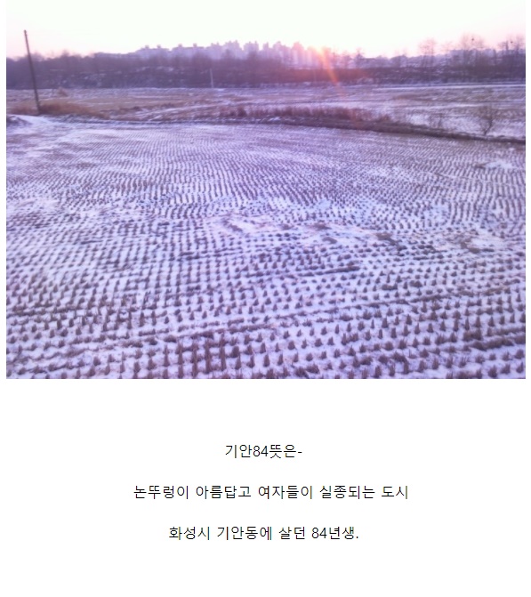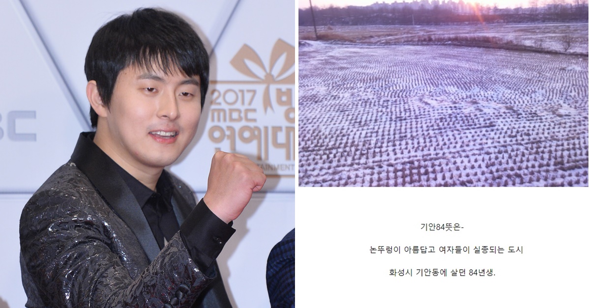 기안84의 뜻을 밝혔는데요. "논두렁이 아름답고 여자들이 실종되는 도시. 화성시 기안동에 살던 84년생"이라고 설명했습니다. 화성연쇄살인사건을 언급한 듯한데요.