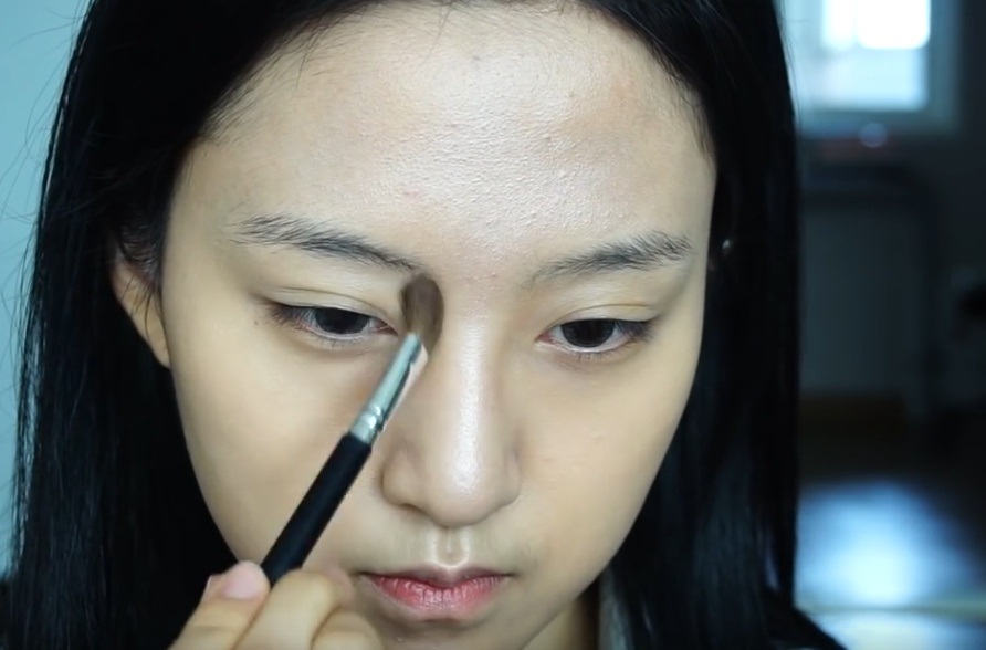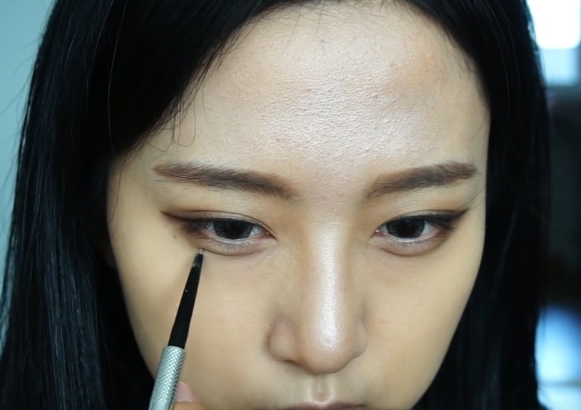 눈끝에 살짝 음영감을 한 번 주고 삼각존을 채워줍니다.