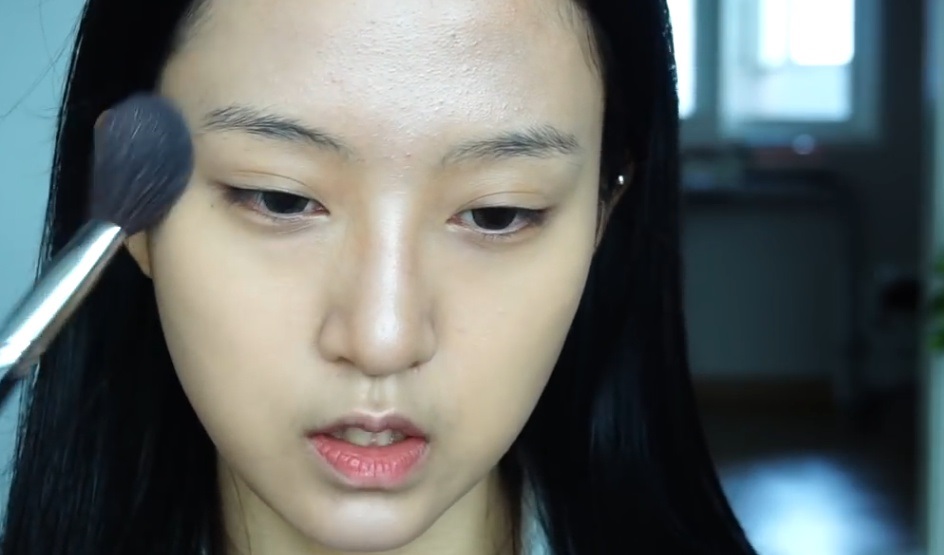 특히 콧대에는 일자로 세게 넣어줍니다. 이마쪽도 넓게 펴바릅니다.