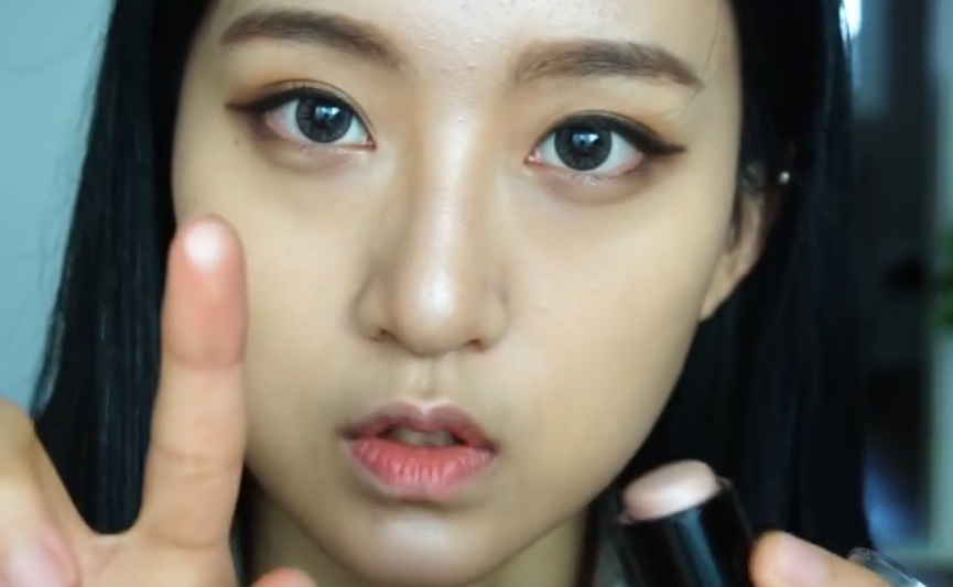 하이라이터를 콧대, 턱 끝, 눈 앞머리, 애교살에 발라줍니다.