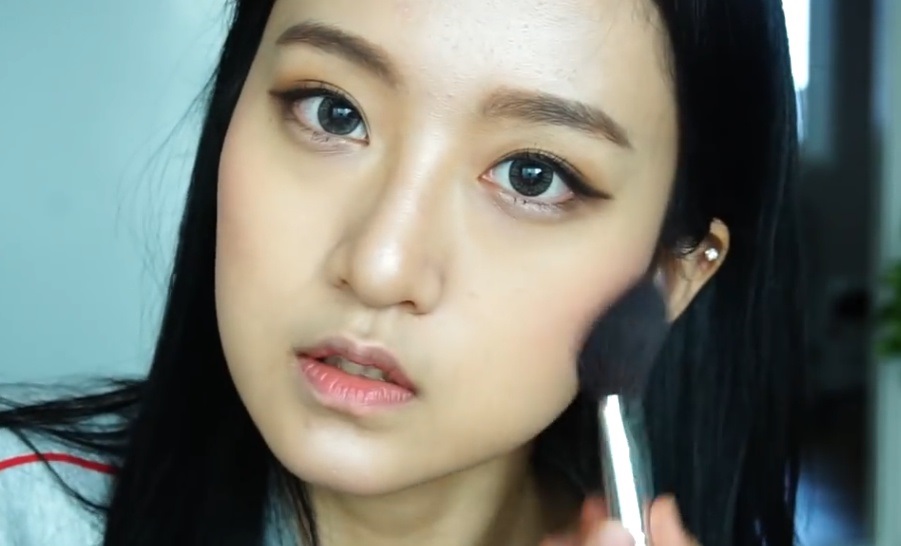 블러셔를 광대에 넓게 진하게 바릅니다.