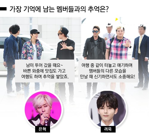 "저는 남미 투어를 갔을 때가 기억납니다. 바쁜 스케줄 속에서도 중간 중간 맛집도 가고, 여행도 하면서, 정말 재미있었죠. " (은혁)