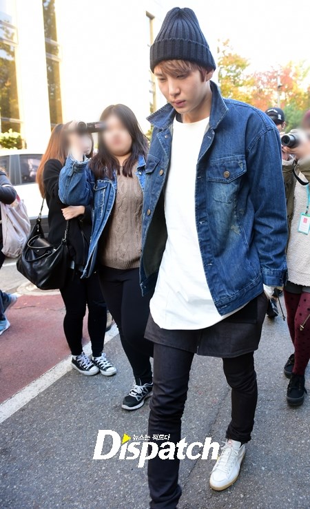 출근길, 팬들의 삼엄한 경계(?)속에 비스트 멤버들이 모습을 드러냈습니다. 멤버들 모두 음료와 팬레터 등을 꼭 든 채 서둘러 출근했는데요. 각자 개성 넘치는 패션도 돋보입니다.