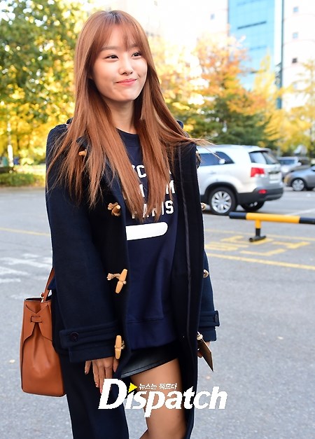 패션은 깜찍했습니다. 맨투맨과 짧은 가죽치마를 매치했습니다. 운동화를 신었음에도 늘씬한 각선미가 돋보였는데요. 네이비 떡볶이 코트를 입어 풋풋하기까지 했죠.