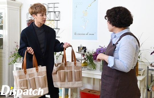 먼저, 선생님과 인사를 나눕니다. 잠시 후 준비한 가방을 펼치는데요. 기광은 직접 만든 '킨포크백'을 바자회에 내놓기로 했는데요. 이 가방에 말린 꽃, 바게트, 양초 등을 넣을 예정입니다.
