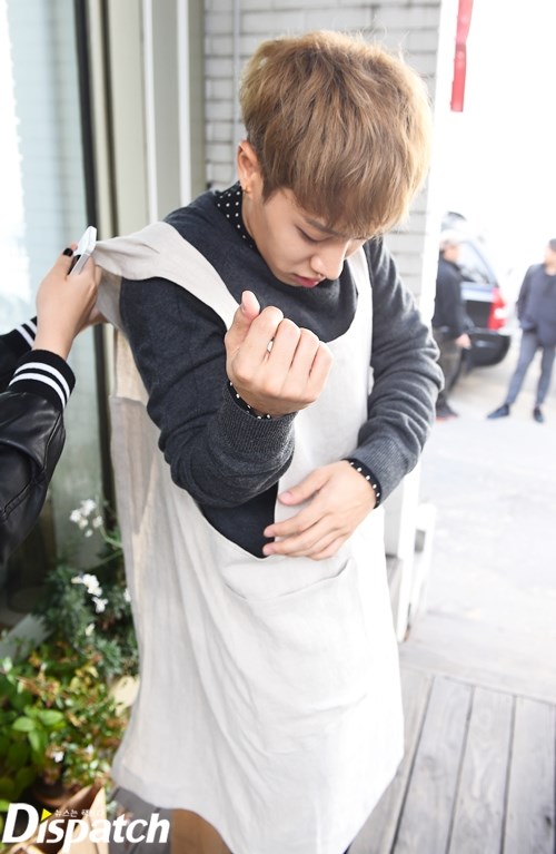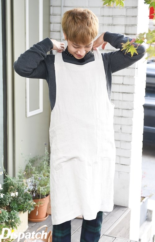 그리하여, 샌드위치에 이어 기광표 2번째 요리교실이 시작됐습니다. 서론이 길었죠? 요리를 하기 전, 청결 유지를 위해 앞치마를 착용합니다. 이런 남자, 훈훈~하죠?