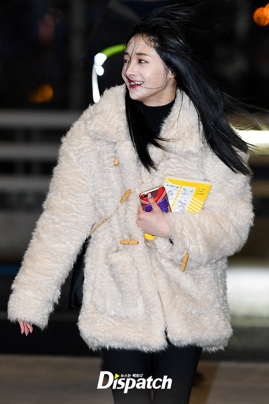 주결경은 이날 화이트 퍼자켓으로 한파에 대비한 패션을 선보였다.