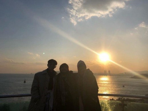 공개된 사진은 탁 트인 바다를 배경으로 포즈를 취하고 있는 세 남자의 모습이 담겼다. 역광으로 실루엣만 확인할 수 있지만 박서준 뷔 박형식이 포즈를 취하고 있는 것.