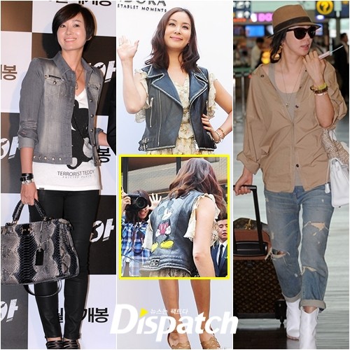 단아함의 대명사 오연수도 그랬다. 그는 최근 한 행사장에서 과감한 캐쥬얼룩을 선보였다. 빈티지한 청 재킷에 블랙 캐릭터가 그려진 하얀색 티셔츠를 매치했다. 여기에 블랙 팬츠와 화려한 백으로 포인트를 줬다.