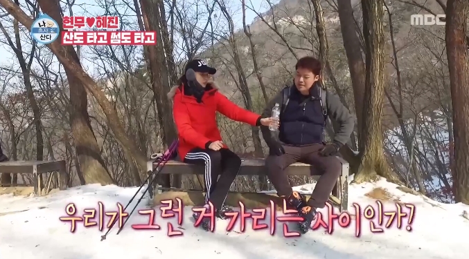 두 사람은 앞서 등산을 했습니다. 한혜진은 "왼쪽이 오빠 거죠?"라며 물병을 챙겨줬는데요. 전현무는 "우리가 그런거 가리는 사이인가?"라고 했죠.