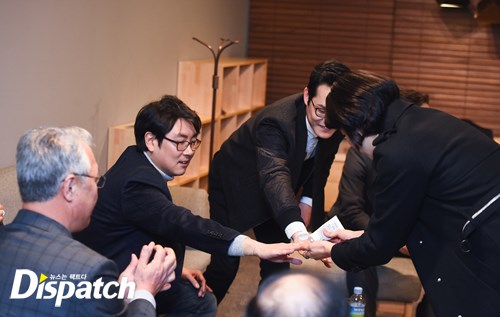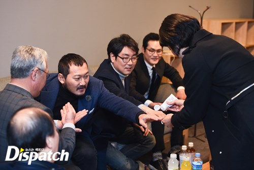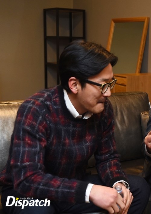 하정우가 인터뷰를 끝내고 자리로 돌아왔습니다. 그는 여전히 긴장중이었습니다. '허삼관'을 하면서 감독으로서, 배우로서 고민이 많았다고 합니다.