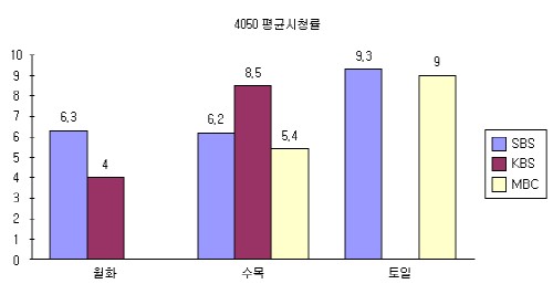 ◆ 40~50대 : 추적자(월화) → 각시탈(수목) → 신사(토일)