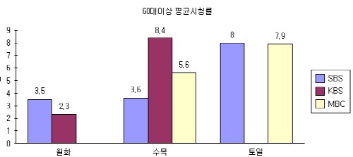 ◆ 60대 이상 : 추적자(월화) → 각시탈(수목) → 신사(토일)